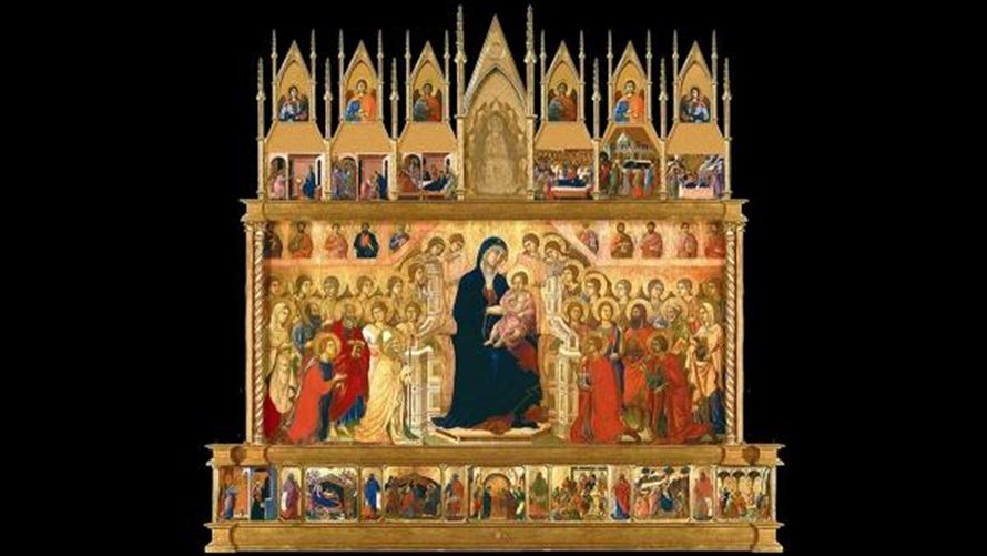 Duccio di Buoninsegna és l’autor del Sant Sopar, detall d’una obra immensa que és la imatge del cartell de Pasqua de CL aquest any.El 9 d’octubre de 1308 és un data que marca una línia divisòria a la història de l’art occidental entre la tradició bizantina i gòtica. La catedral de Siena encarrega a Duccio di Buoninsegna l’obra que es convertirà en el cor de la ciutat, la Maestà, destinada a l’altar major d’una de les catedrals més boniques del món. El contracte que li fan firmar és extremadament exigent. El pintor havia de treballar a sou, sense portar a terme cap altra obra fins que no entregués aquesta. Duccio, que llavors rondava els seixanta, era a la plenitud de la seva maduresa artística i va aportar a aquesta feina tota l’experiència de la tradició, enriquida per un diàleg constant amb els més grans de la seva època, començant per Cimabue i Giotto. Es tracta d’un políptic enorme que no acabarà fins al cap de tres anys. El 9 de juny de 1311 és traslladat en processó des del taller de l’artista fins a la catedral, acompanyat per tota la ciutat en festa. L’autor es pren la llicència de firmar l’obra amb una inscripció a la base del tron, on demana llarga vida per a ell mateix i pau per a la ciutat, que sortí vencedora sobre Florència a la famosa batalla de Montaperti (1260).